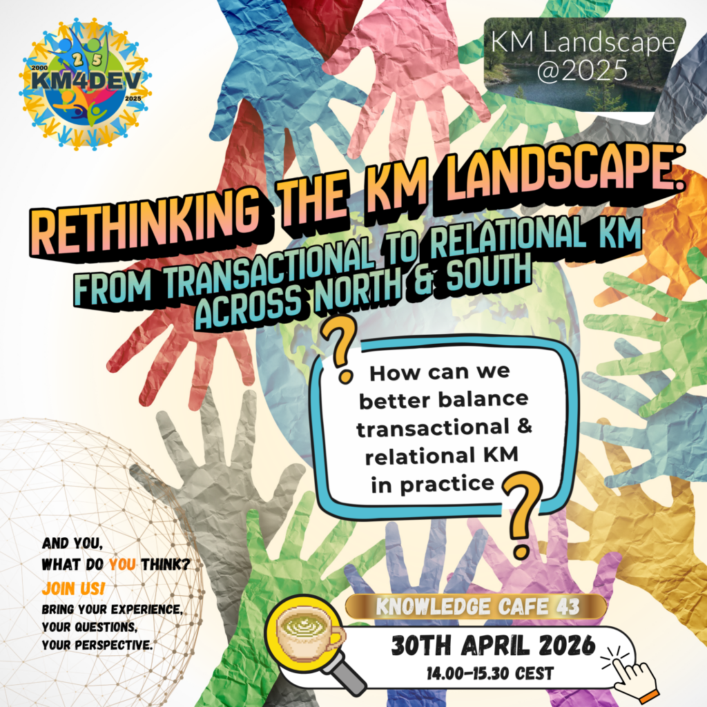 This conversation is part of a broader reflection on the KM Landscape as a global discipline and how we shape it through our everyday practices. Do they look different depending on where we sit, our contexts, and our experiences across the Global North and Global South.